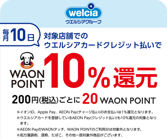 毎月10日の「ウエルシアカード10%還元デー」は、ポイントをいっぱい貯めるチャンス。